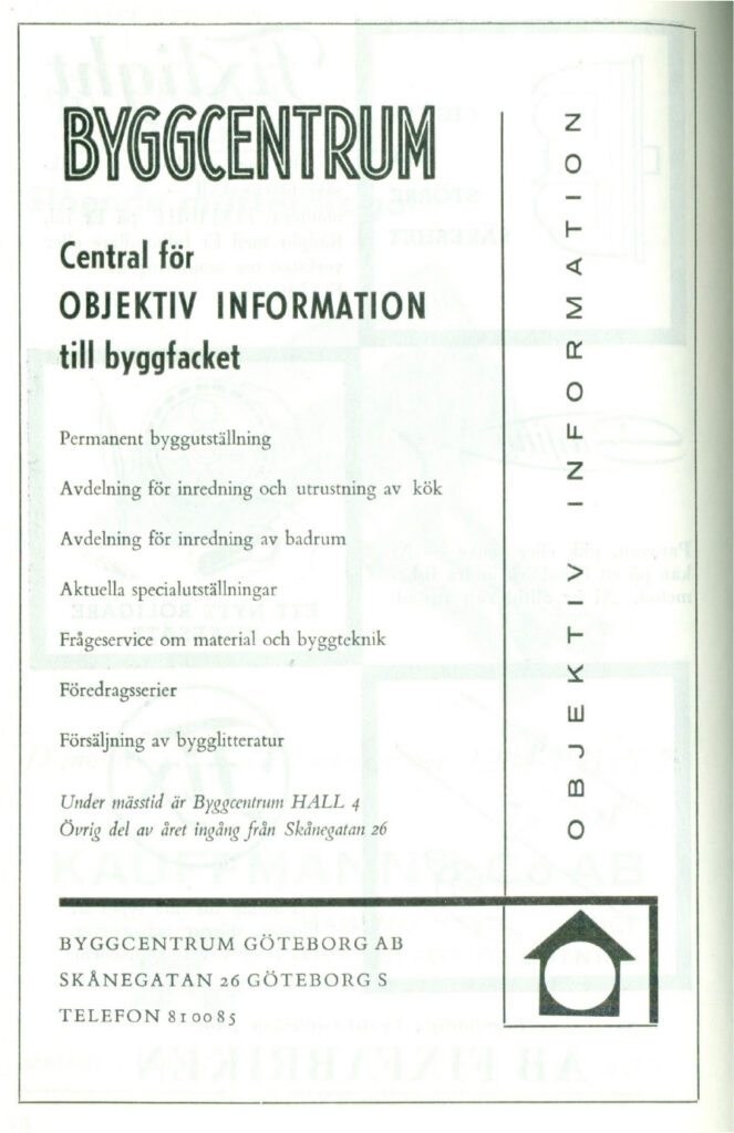 Inledningsvis var Byggcentrum lokaliserad i Svenska Mässans omedelbara närhet, men 1991 flyttades verksamheten till Krokslätts fabriker, där man också bedrev en bokhandel med bygglitteratur och arrangerade ett antal mindre mässor.